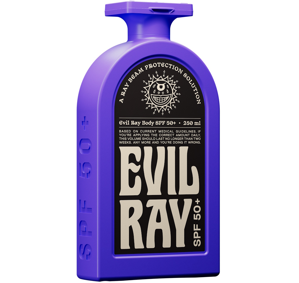 Born from frustration with bland, beachy sunscreen brands that blur into one, Evil Ray reframes sun protection from a beach-day afterthought to a daily non-negotiable. The message is simple: protect yourself.
