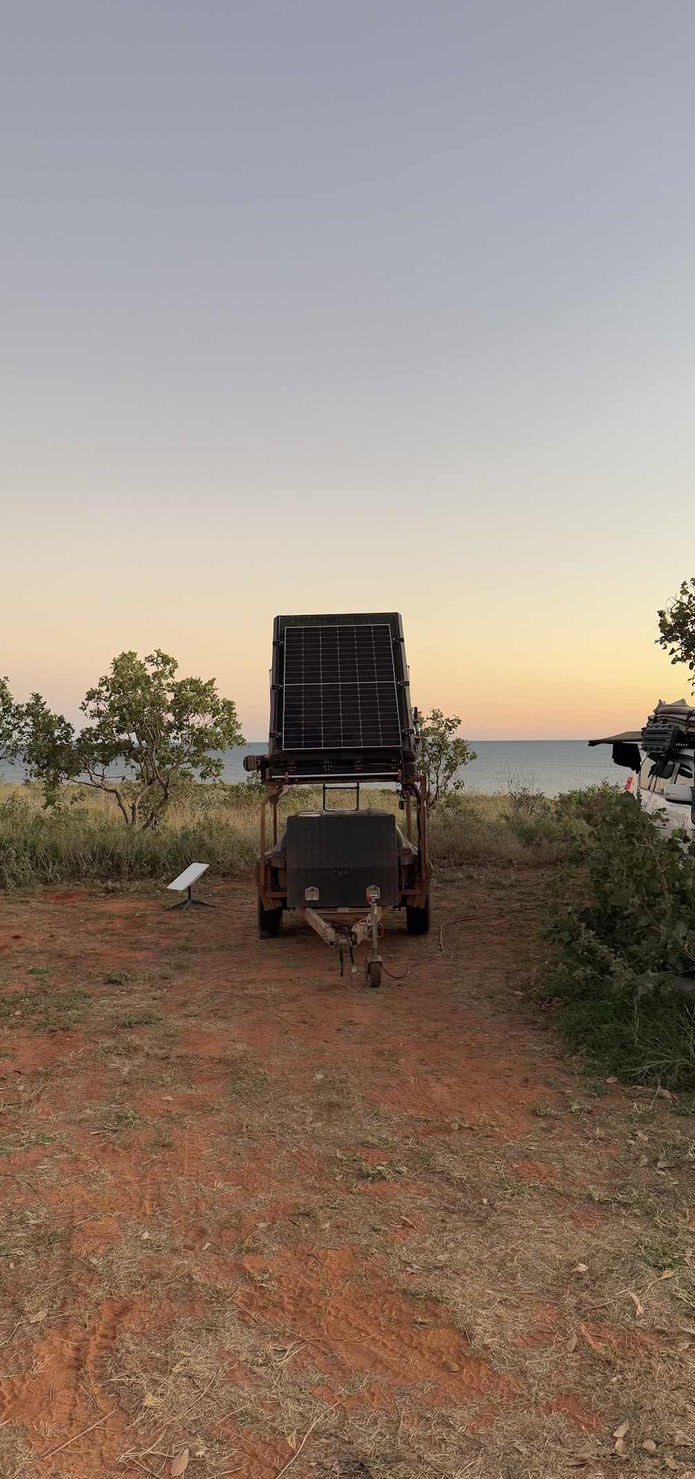 This is the Voltx Topband in action on a remote beach near Broome. It provided power for our Starlink, mobile phones, computers and UHF radios.