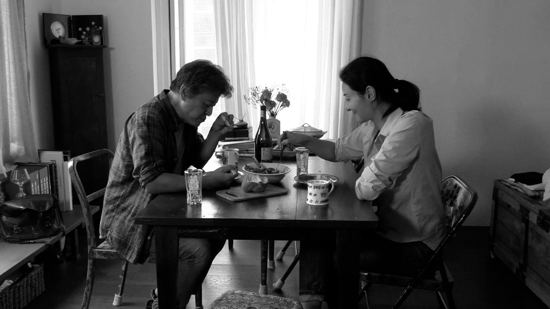 In Walk Up, the filmmaker protagonist Byung-Soo (Hong regular Kwon Hae-Hyo), adult daughter in tow, visits an old girlfriend who owns a four-storey apartment building. Over a four-part structure, we make occasional jumps forward in time, from the evening with the friend and daughter, to a growing relationship with the proprietor of the second-floor restaurant, to our hero’s occupancy of the top floor with a new girlfriend possibly years later. The final part returns us to the beginning, with the filmmaker again encountering his daughter on the evening where the first chapter ended.