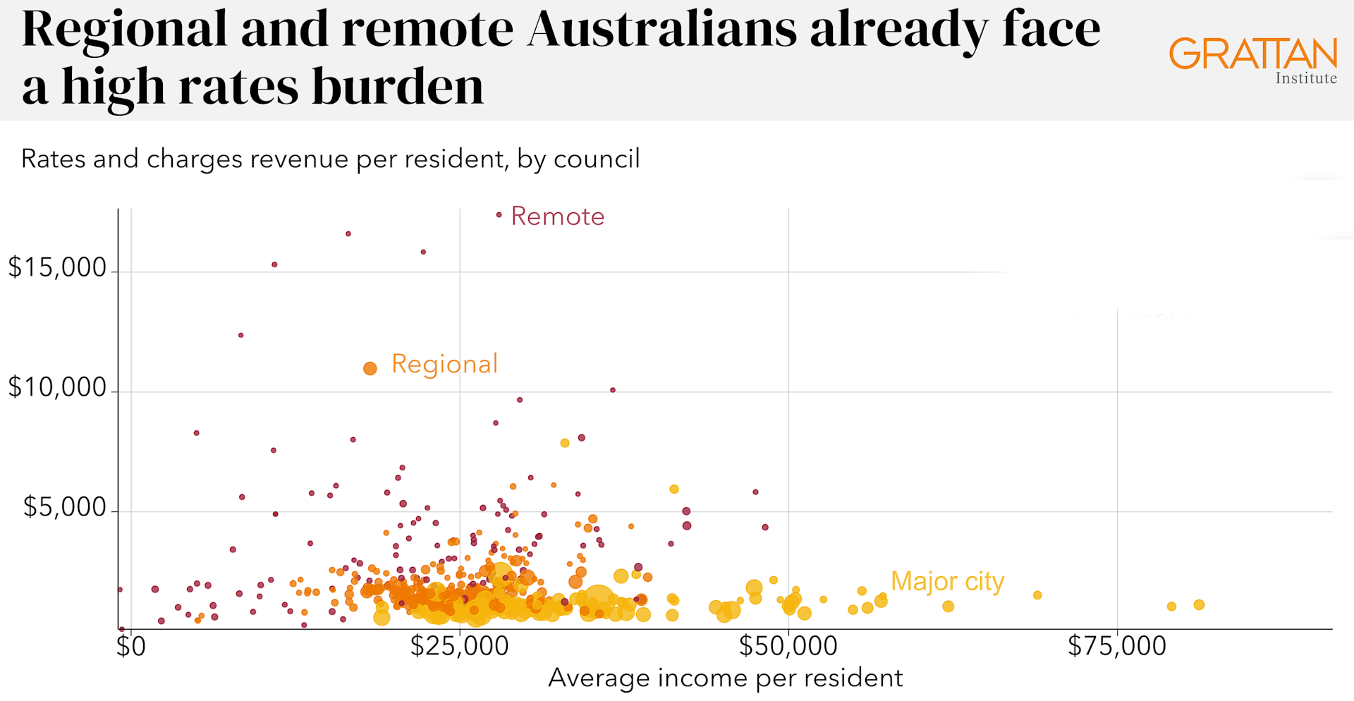 Rural and remote councils have limited ability to raise more revenue from ratepayers. Their ratepayers already pay higher rates than those in cities, despite having lower average incomes.