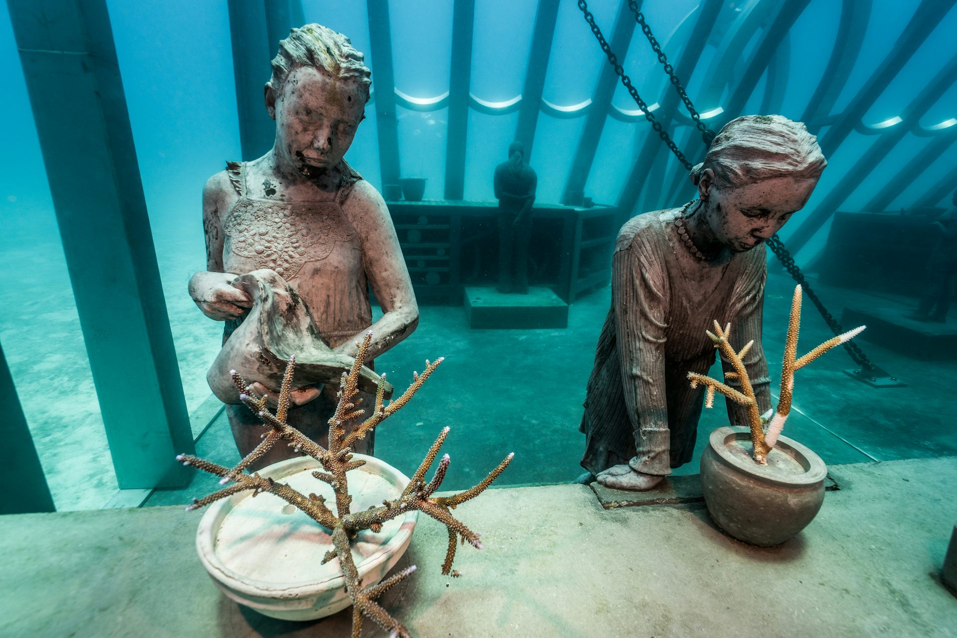 Underwater sculptures link art, science, tourism, education and conservation. MOUA/Coral Greenhouse/Photo: Jason deCaires Taylor[15]
