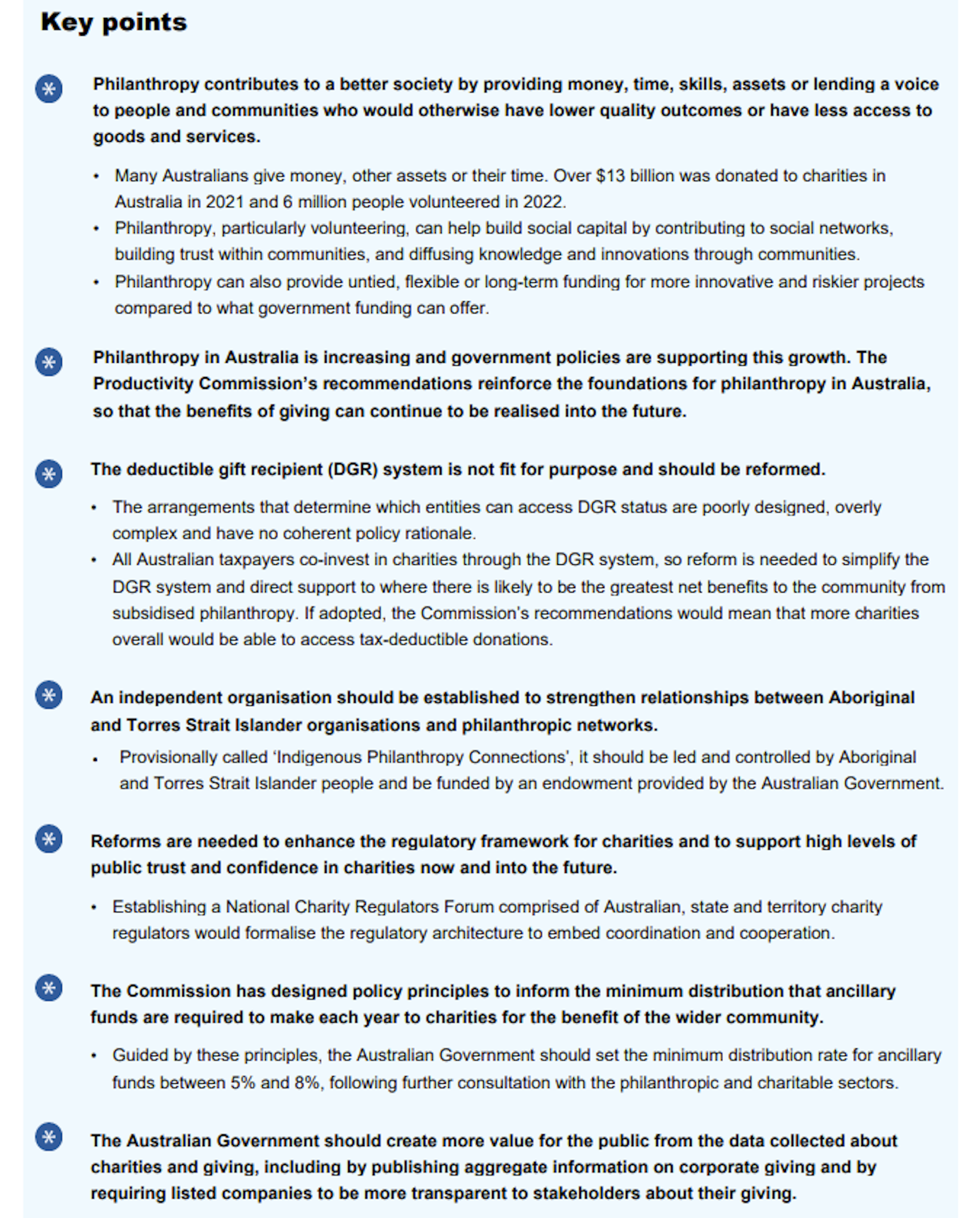 To achieve this, Leigh and Treasurer Jim Chalmers asked the Productivity Commission to conduct a once-in-a-generation[6] 15-month review of philanthropy, which was published last Thursday[7].