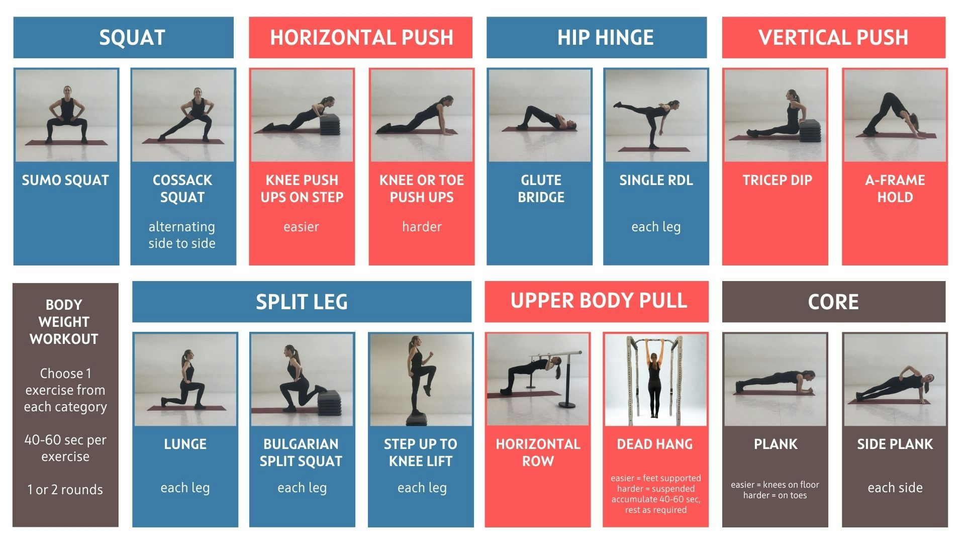 These involve using your body for resistance rather than gym equipment. So they are lower intensity, but you do them more often (most days or even every day).