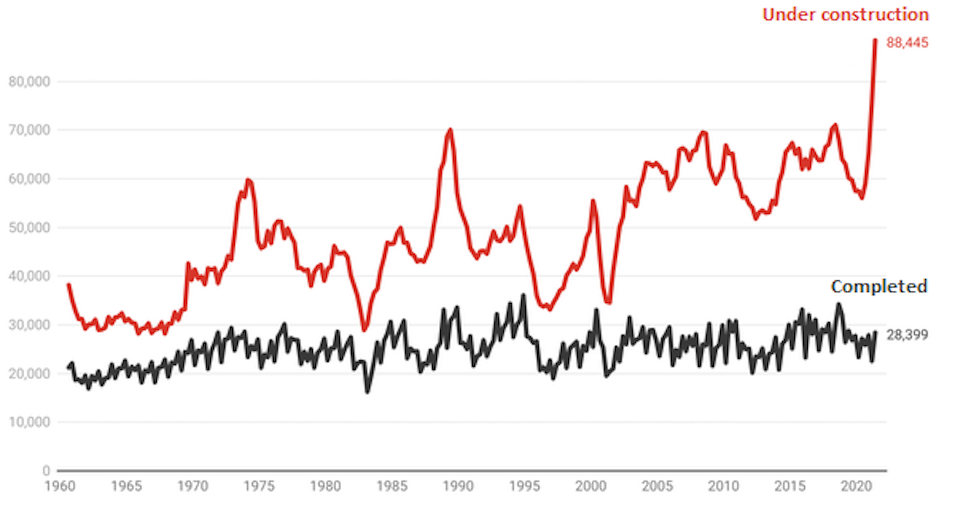 But bizarrely, as has been the case for half a century, the number of houses completed each quarter has barely moved[17].