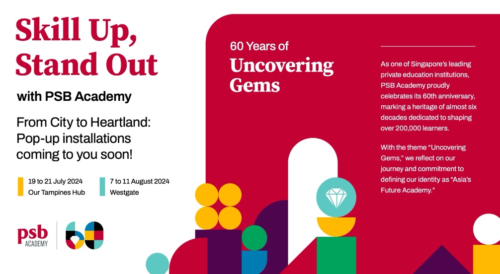As one of Singapore's leading private education institutions, PSB Academy proudly celebrates its 60th anniversary, marking a heritage of almost six decades dedicated to shaping over 200,000 learners. With our campaign themed "Uncovering Diamonds," we reflect on our journey and commitment to defining our identity as "Asia's Future Academy."