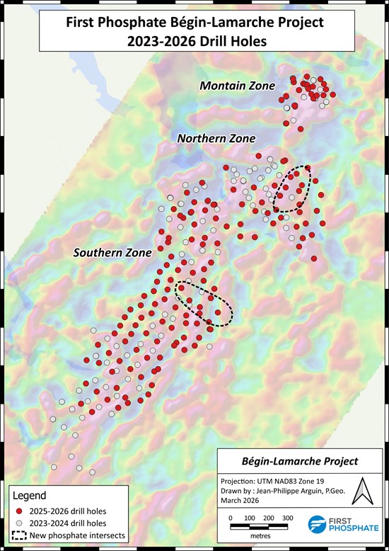 First Phosphate Bégin-Lamarche Project 2023-2026 Drill Holes