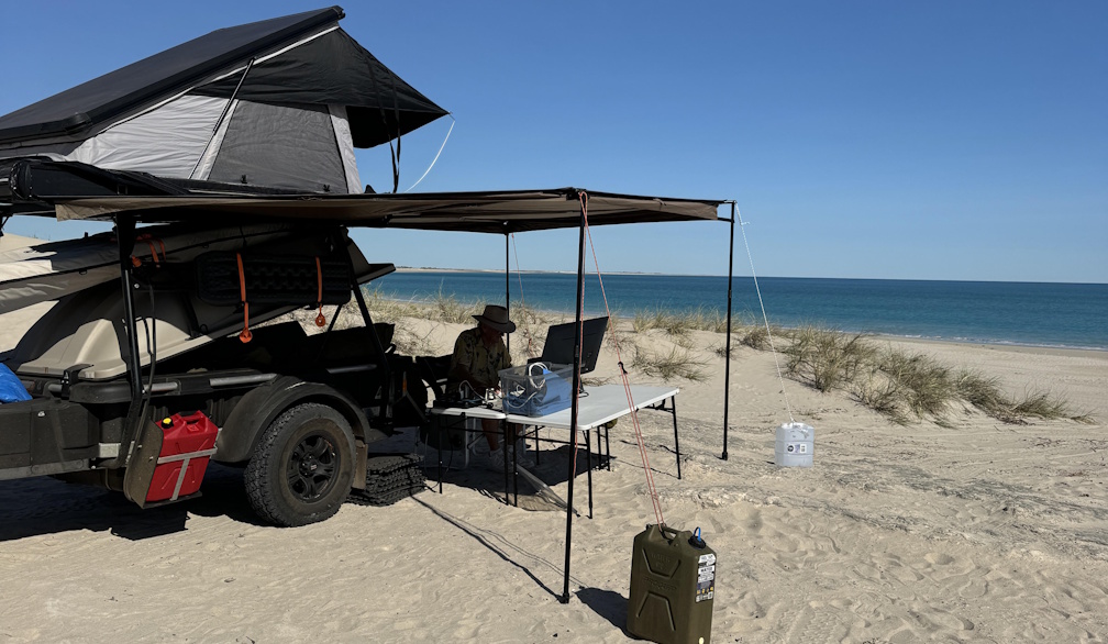This is the Voltx Topband in action on a remote beach near Broome. It provided power for our Starlink, mobile phones, computers and UHF radios.